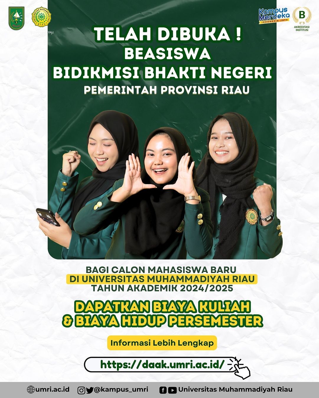 BEASISWA BIDIKMISI Bhakti Negeri Pemerintah Provinsi Riau Tahun 2024